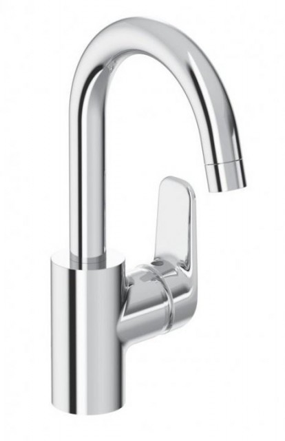 Baterie lavoar Ideal Standard Ceraflex cu ventil pop-up si pipa inalta ( stoc bucegi )Baterie lavoar Ideal Standard Ceraflex cu ventil pop-up si pipa inaltaBateria pentru lavoar face parte din gama Ideal Standard colectia Ceraflex cu montaj pe lavoar. Este fabricata din alama sanitara cu finisaj crom si compusa din: cartus de 40 mm HWTC, limitator de temperatura, perlator inclus, ventil pop-up si racorduri flexibile de conectarea la apa G3/8 cu un debit de 9 l/min. Pipa pivotanta a bateriei este de 120° si are dimensiunea de 146 mm. Bateriei pentru lavoar ii sunt atribuite tehnologiile: Click prin care mecanismul de inchidere cu pastila ceramica si cu sistemul Click ofera control complet asupra temperaturii apei calde, functia de a economisi apa si zona de lucru crescuta la 120°, preluand controlul asupra temperaturii in zona de confort 34-42°C si tehnologia EasyFix prin care se instaleaza mult mai usor.