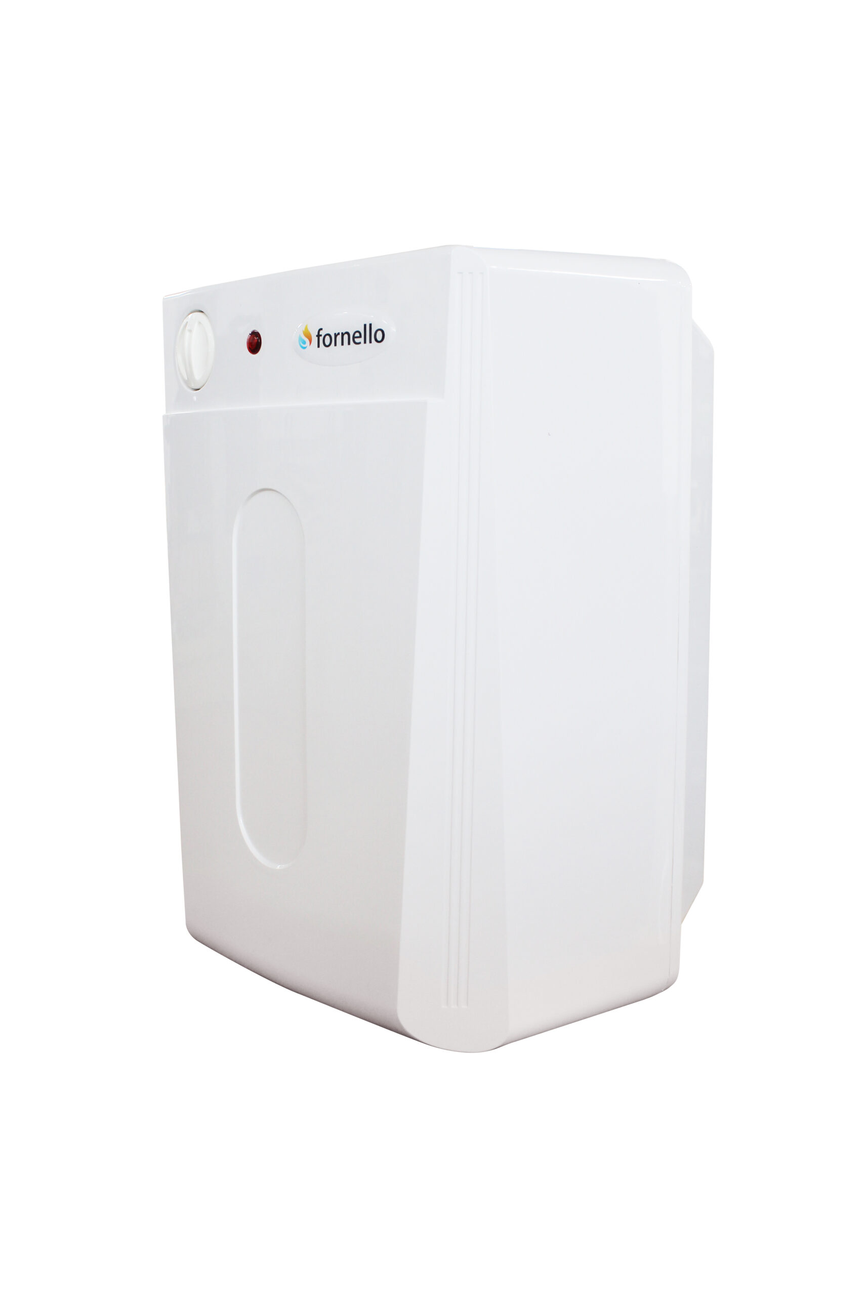 Boiler electric Fornello Titanium Plus 10 litri , montaj sub chiuveta, reglaj extern de temperatura, 1500 w Boilerul electric Fornello Titanium este un generator de caldura extrem de eficient pentru incalzirea apei, care functioneaza pe baza de energie electrica si este controlat prin intermediul unui sistem avansat de reglare a temperaturii.Montarea acestuia se poate face deasupra lavoarului.Datorita tehnologiei integrate Izolatia este din polistiren expandat (stiropor) de inalta densitate.Boilerul dispune, de asemenea, de un sistem avansat de siguranta, fiind echipat cu dispozitive pentru protectia la supraincalzire si suprapresiune si cu un termostat pentru oprirea sa automata la atingerea temperaturii dorite.Boilerul este usor de utilizat, nu trebuie decat sa reglati nivelul de temperatura dorit, iar sistemul de reglare a temperaturii va asigura o functionare optima de-a lungul timpului (indicatorul luminos va informa utilizatorul daca boilerul incalzeste apa sau nu).Boiler electric Fornello Titanium – Montarea acestuia se poate face deasupra lavoarului.- Carcasa care este produsa din ABS de inalta calitate rezistent mecanic- Izolatia este din polistiren expandat (stiropor) de inalta densitate.- Toate produsele Fornello au standardul de managementul calitatii ISO 9001:2008 si sunt conform normelor CE cat si normelor CB.Termostat reglabil usor accesibilControlerul mecanic al temperaturii, instalat in partea de jos a boilerului este mare si permite reglarea facila a temperaturii dorite, avand acces frontal.Supapa de siguranta este inlcusa.Produs in EUROPA.